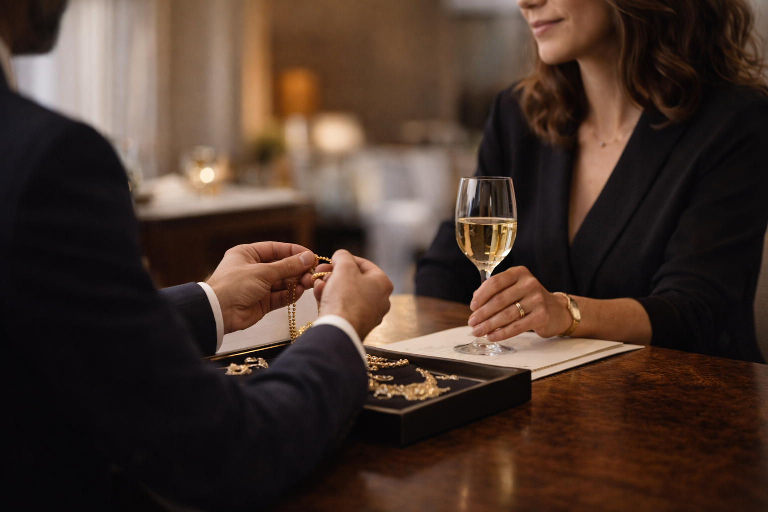 Honest Gold Co. offers a discreet, hospitality-driven approach to evaluating and acquiring jewelry, watches, and valuables, through private events hosted within select communities and clubs.